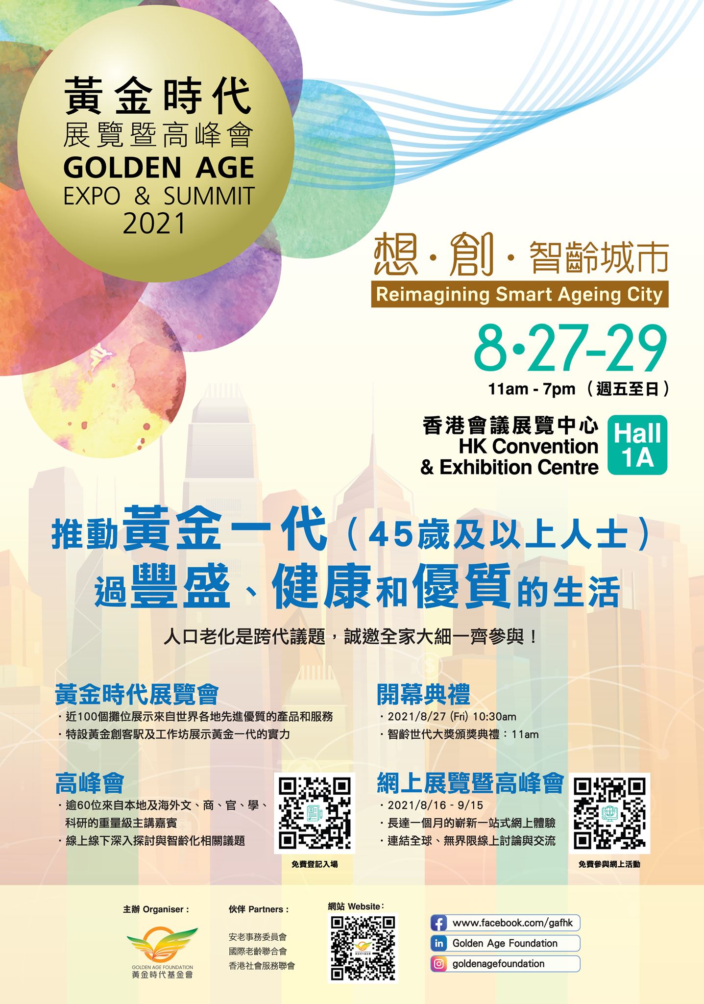「黃金時代展覽暨高峰會2021」以探討人口老化議題為核心,今年的主題為「想•創•智齡城市」。活動以網上和實體的混合模式舉行,參加者可以透過一連串的線上高峰會及展覽,就老齡化的議題與各地人士交流。