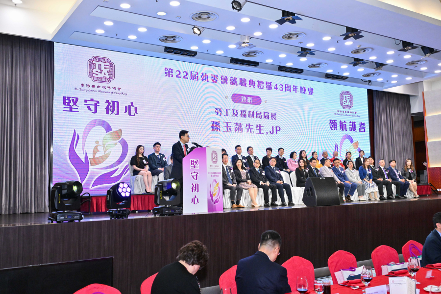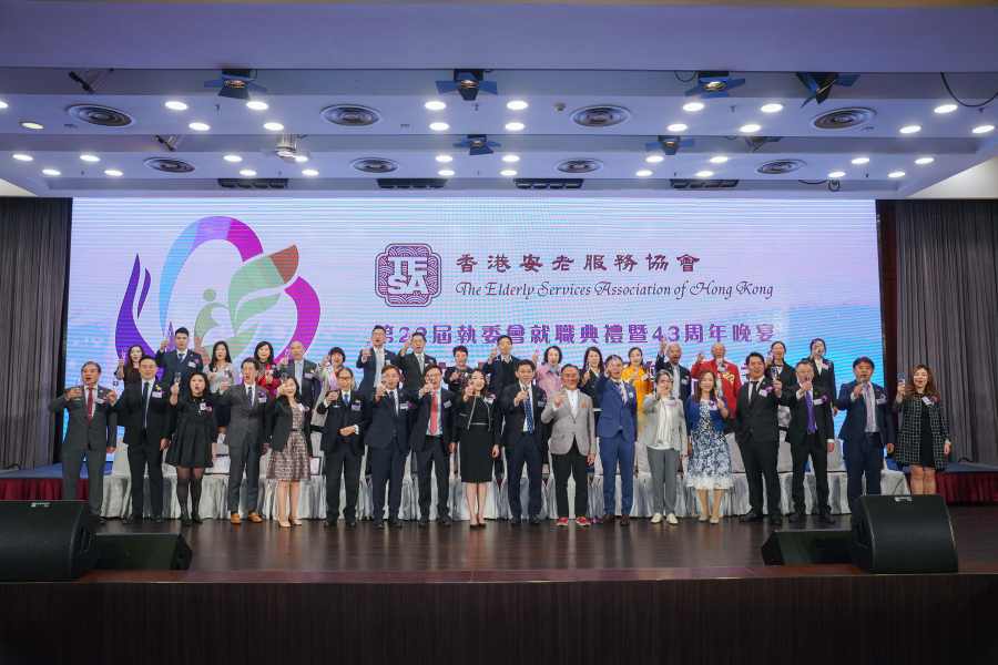 香港安老服務協會於2026年3月6日假座龍堡國際,隆重舉辦第四十三周年晚宴暨第二十二屆執委會就職典禮。多位政府高層及業界領袖蒞臨主禮,包括:勞工及福利局局長孫玉菡先生, JP、中聯辦社會工作部副部長周和先生、社會福利署署長杜永恒先生, JP、安老事務委員會前主席梁智鴻醫生, GBM, GBS, OBE, JP、實政圓桌召集人、前港區全國人大代表暨立法會議員、香港安老服務協會名譽會長田北辰, JP、香港立法會社會福利界代表陳文宜議員、香港安老服務協會第一副主席邱婕兒女士, MH,以及晚宴籌委會主席鄒錚女士。是晚更有超過600位業界精英到場,共同見證新一屆執行委員會正式就職,並慶祝協會成立43周年。